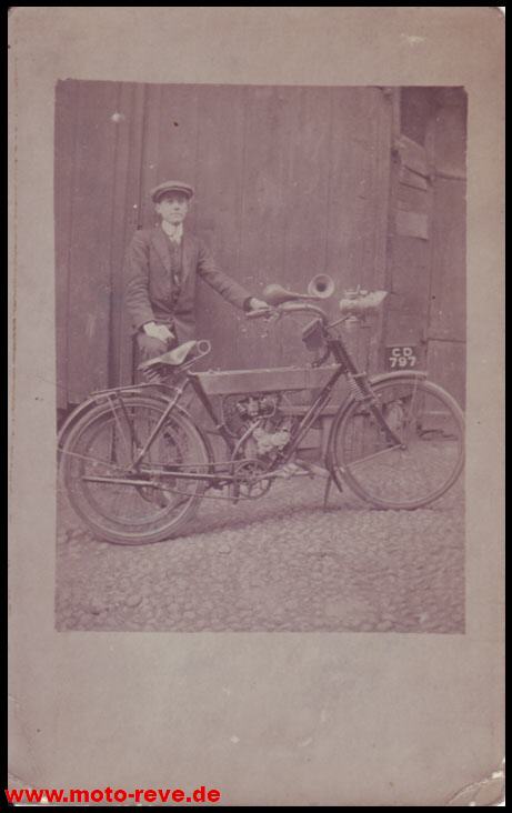 Modellen, die Engländer blieben dem eckigen Tank während der ganzen Bauzeit treu. Man verzichtete auch auf eine Riemenspannung stattdessen wurde ein Gliederriemen dem Keilriemen vorgezogen. Durch diese Rahmenänderung konnte der Schwerpunkt noch einmal tiefer gelegt werden. Die Fahrzeuge wogen 34,5 kg und waren bei 2 hp Leistung zirka 40 Meilen schnell. Ab 1908 kam sogar eine leichte Druidgabel zum Einsatz, die bei Schweizer Modellen erst ab zirka 1913 zu finden war.